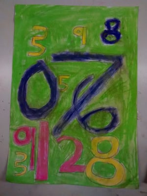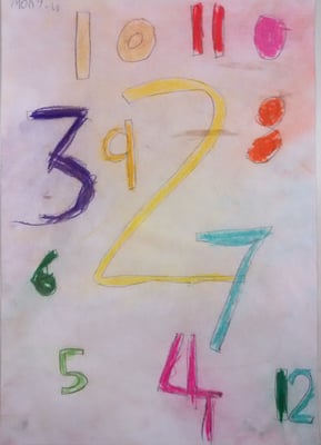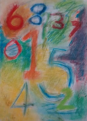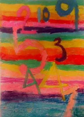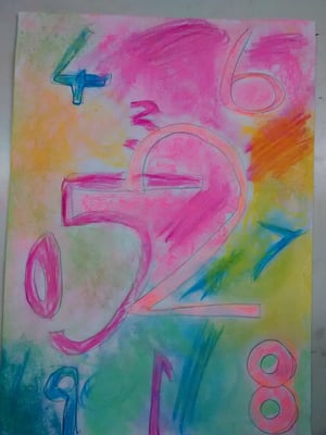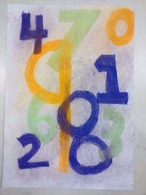Jasper Johns created art from everyday things like numbers, flags and maps. Kids are particularly familiar with numbers and from this confident position they can experiment with overlapping and exploring the qualities of the medium they are using. In this lesson children used soft pastels, many for the first time.