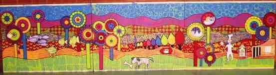 The background and lollipop trees are based on an art lesson the children did in the style of Austrian artist Friedensreich Hundertwasser. The children also added things that represented the area.